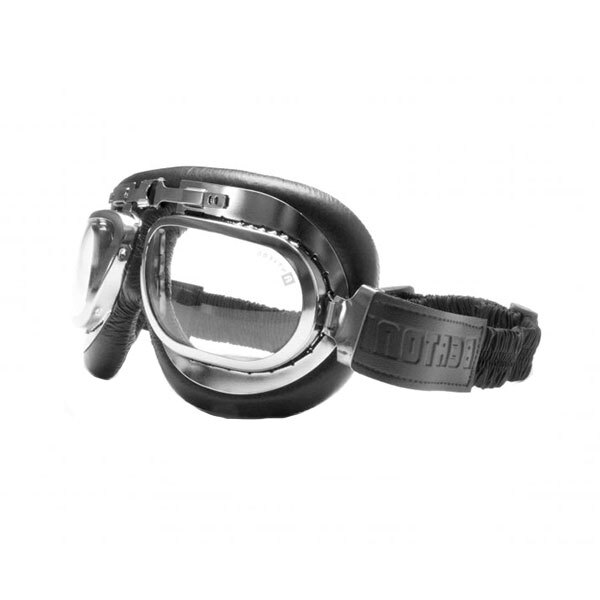Genießen Sie Ihre Ausflüge auf einer Vespa oder einem Custom-Motorrad mit dieser schlichten, aber praktischen Brille im Vintage-Stil mit grauem Finish und transparenten Motorradhelmgläsern. Mit seiner einfachen elastischen Einstellung ist es eine Sache von Sekunden, sie auf ihre ideale Größe zu bringen.