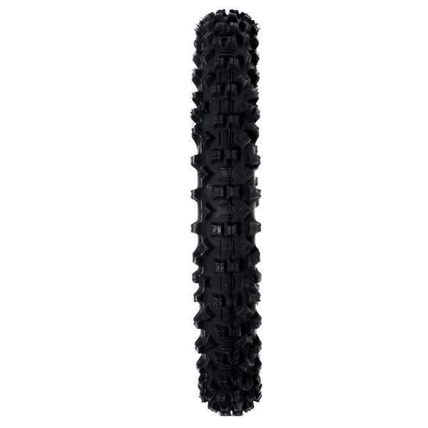 Enduro, Offroad, sehr haltbarer Fasergummi-Vorderreifen, der außergewöhnlichen Grip und sehr geringen Abrieb auch in hartem Gelände garantiert.