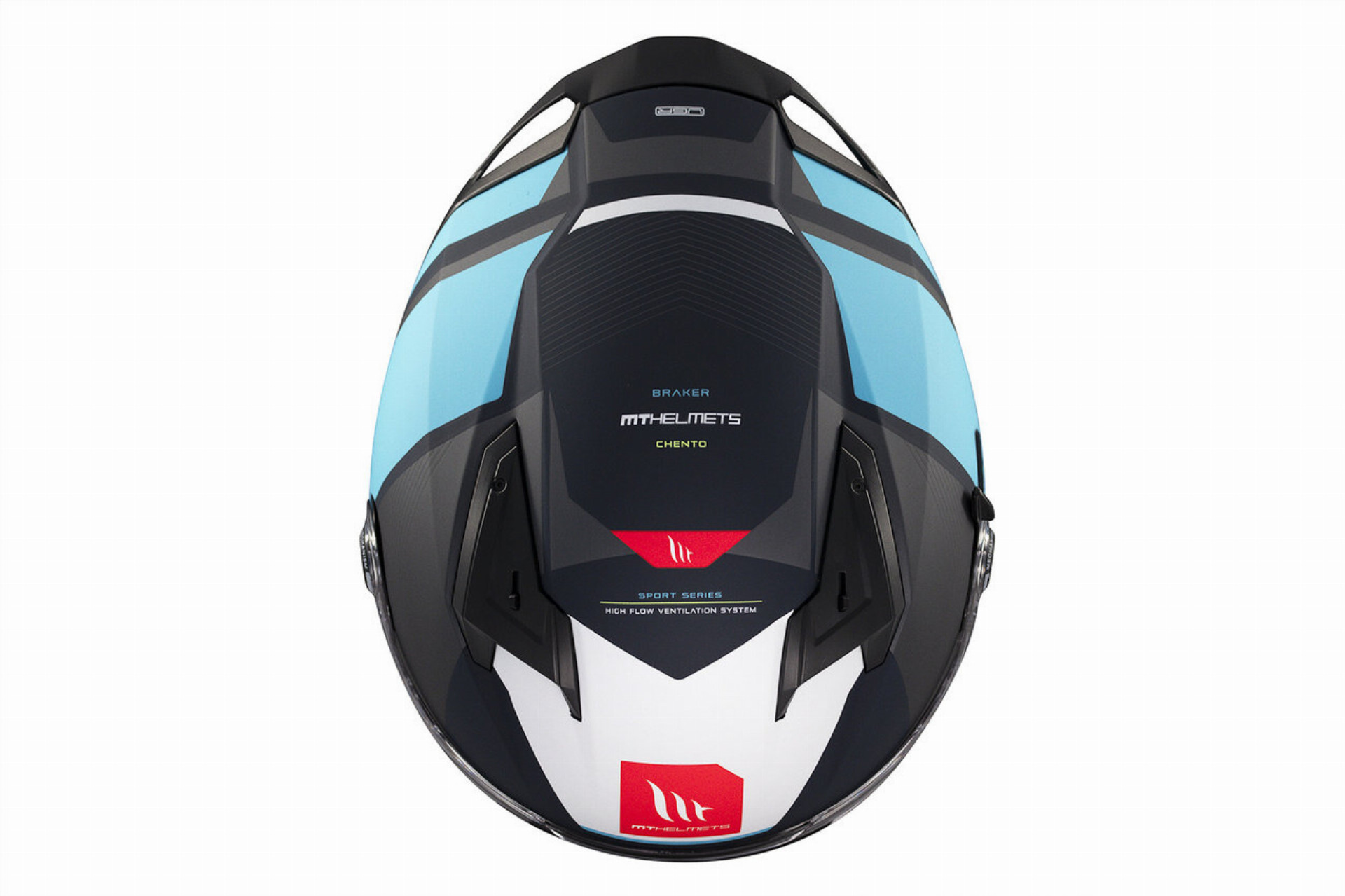 FF128SV Braker C7 Blue Grey Integralhelm, Unisex, belüftet, mattes Finish. Es umfasst eine Sonnenbrille, einen Schnellverschluss und besteht aus thermoplastischem Harz. Erhältlich in Blau, Pink und Orange. ECE 22-06 zugelassen für Männer und Frauen. MT BRAKER SV.