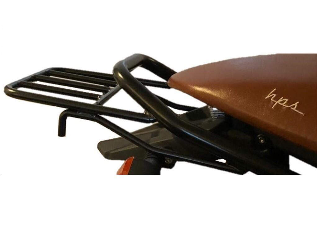 Schwarzer Gepäckträger für FB Mondial HPS 125 (2020–2024). Stilvoll, robust und einfach zu montieren. Die perfekte Verbindung von Tradition und Innovation.