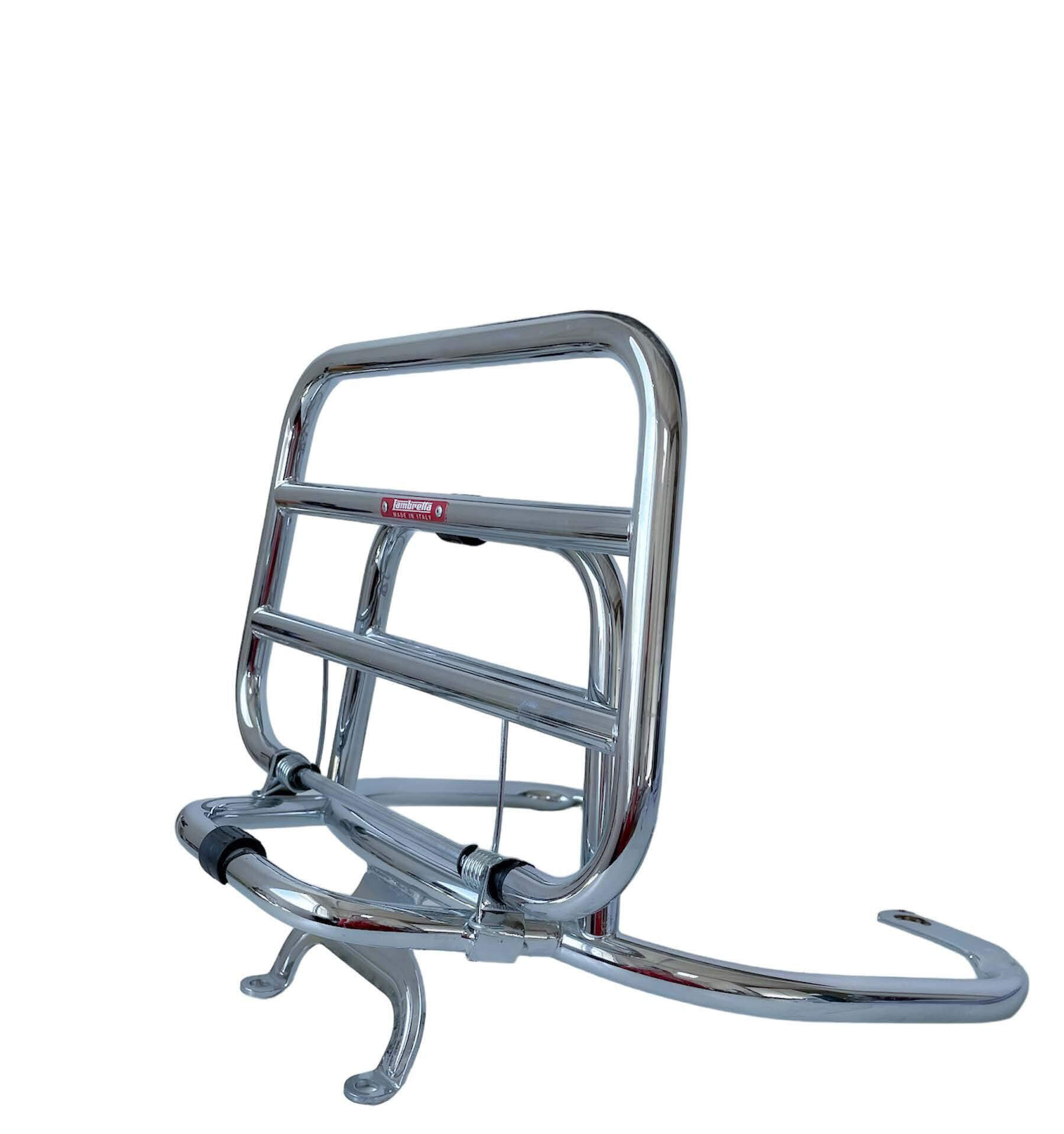 Klappbarer Gepäckträger aus Chrom für Lambretta V 50 Modelle der Baujahre 2023 bis 2026. Stilvoll, robust und einfach zu montieren. Hergestellt in Italien. Ein Muss für jeden echten Lambretta-Fan.