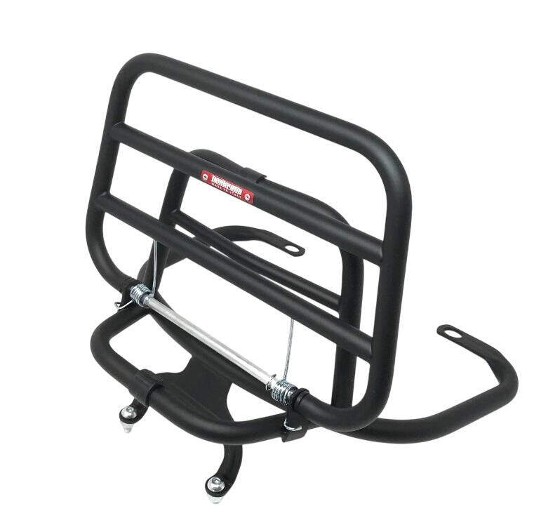 Werten Sie Ihre Lambretta V125 (Modelljahre 2023–2026) mit diesem schwarzen, klappbaren Gepäckträger auf – ein Originalzubehör, das perfekt zum klassischen Design des Rollers passt. Art.-Nr. LMCOR005BK