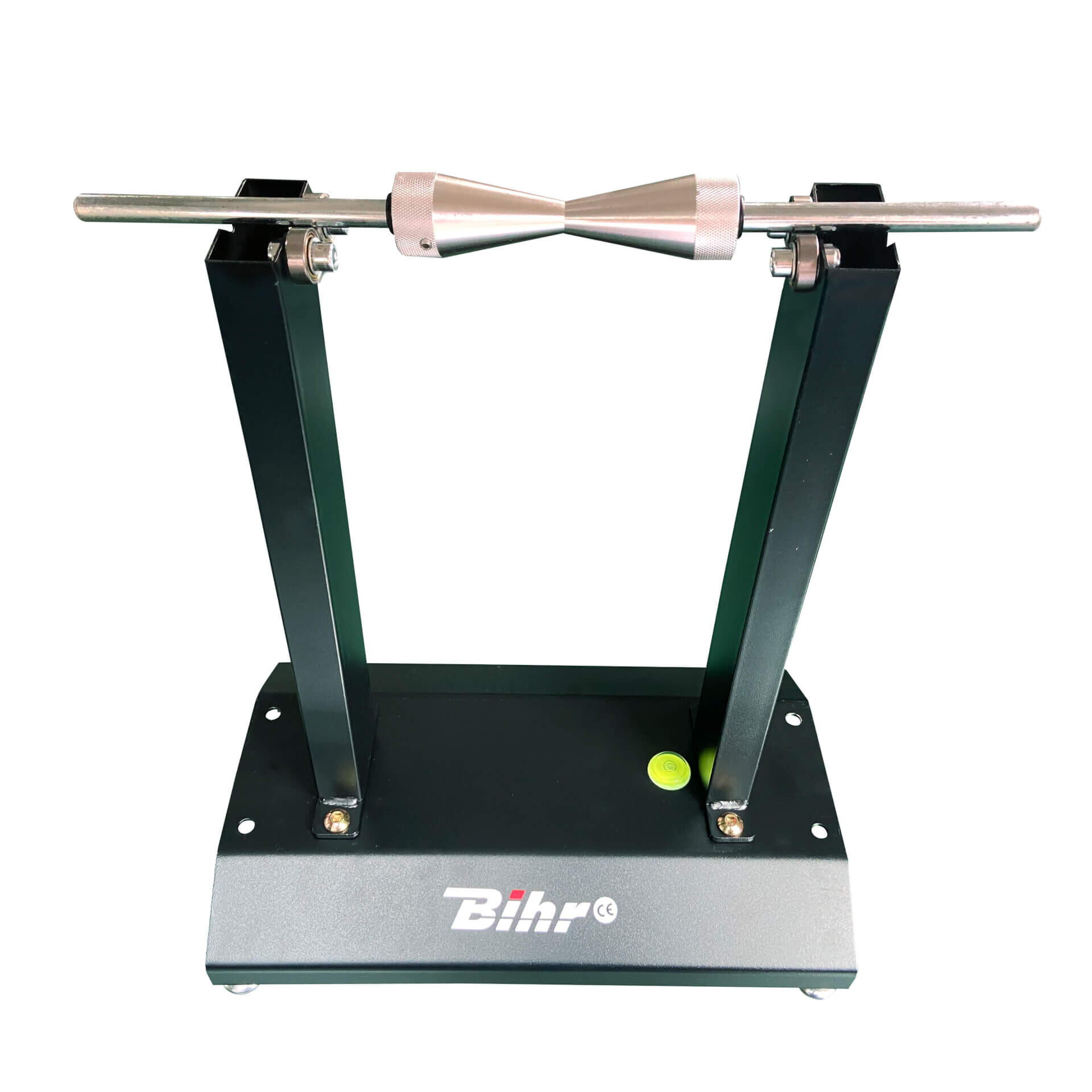 Schwarze Radauswuchtmaschine für Motorräder, spezielle Werkzeuge für Motorräder in Schwarz.
